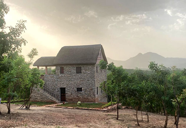 The 25 metre thatched roof water tower which has 4 rooms above it is almost finished too. Besides storing up to 70m3 of water to feed the entire center by gravity, it will also serve as a control tower for the entire estate.